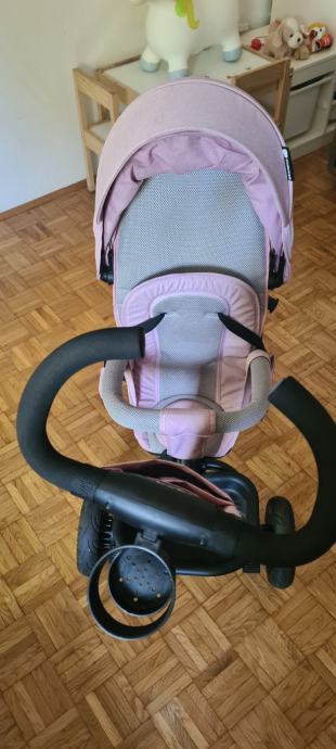 AVEO ima velik zložljiv baldahin, ki ščiti vašega otroka pred soncem in vetrom. Njegov kot lahko nastavite tako, da bo vaš otrok med vožnjo vedno v senci.