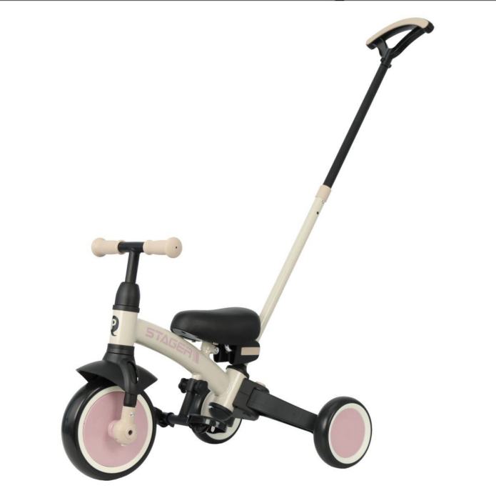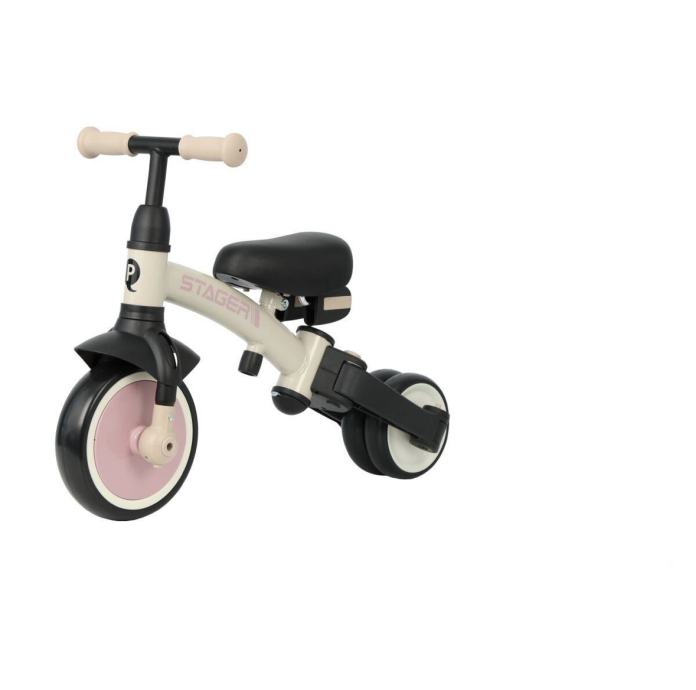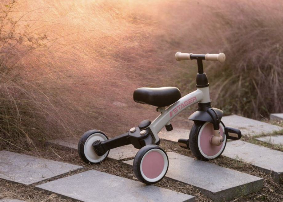 Trikolesnik Stager združuje 3 možnosti uporabe v enem kolesu. Najprej ga lahko uporabljate kot tricikel za najmlajše in ga upravljate z ročko, nato kot trikolesni poganjalec s pedali za samostojno vožnjo otroka in nato kot dvokolesni poganjalec. Trikolesnik Stager raste skupaj z otrokom in zadovolji njegove potrebe v različnih fazah razvoja. Zelo preprosto spremenite tricikel v poganjalec ali trikolesnik s pedali. Trikolesnik je tudi enostavno zložljiv.