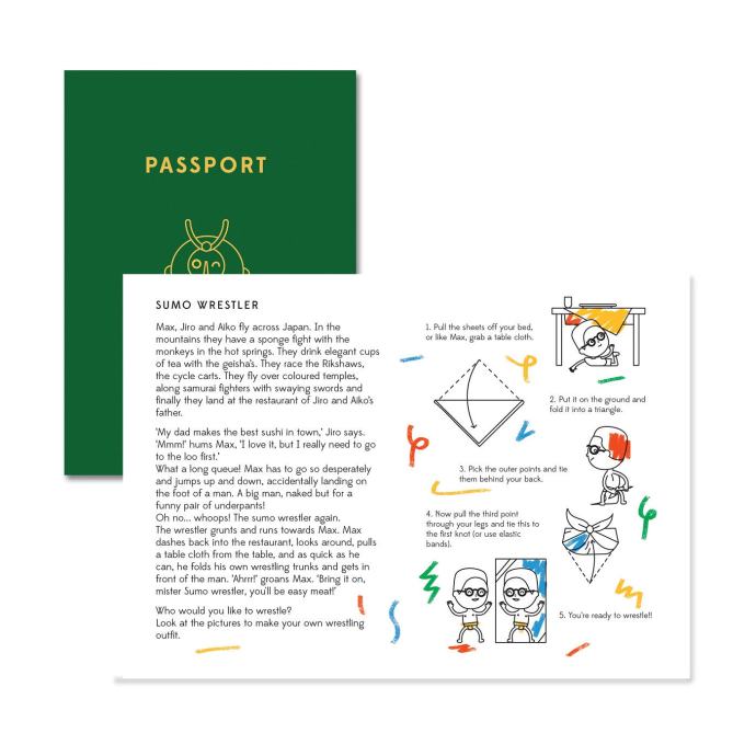Preberi v svojem potnem listu dogodivščin kako narediš svoj sushi, kako zgibati papir v žerjava in zavezati svoj sumo pas 'mawashi'.