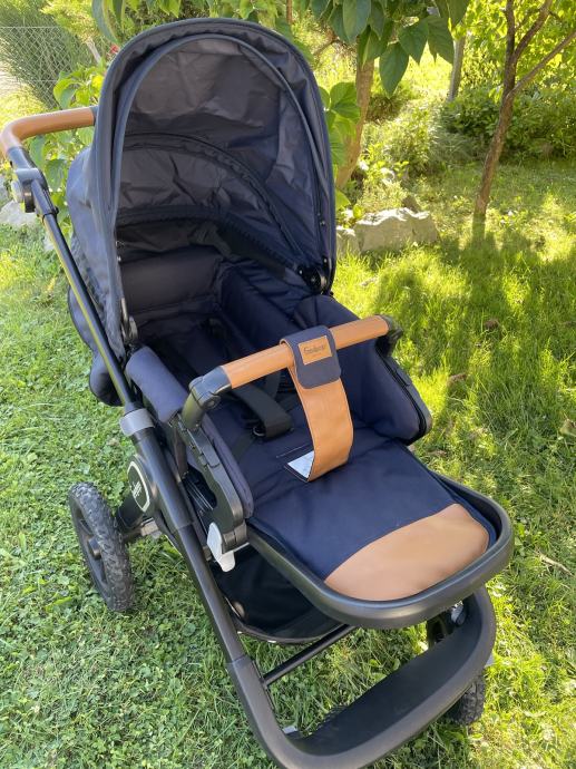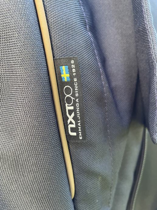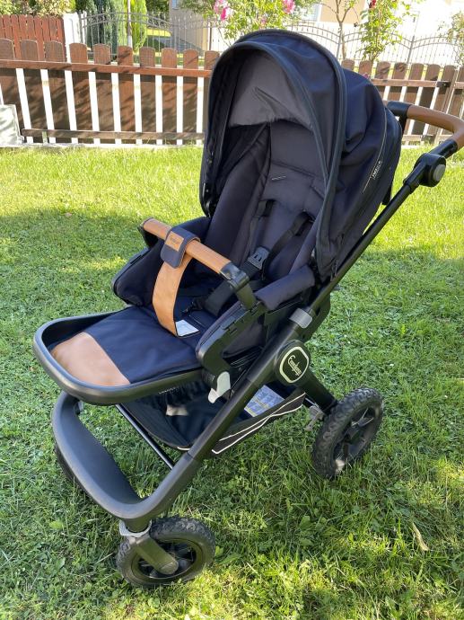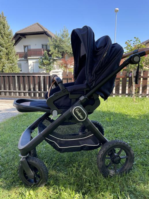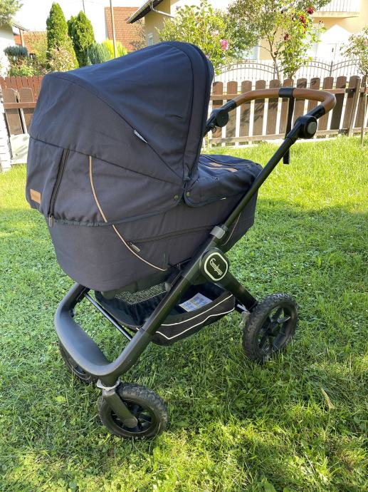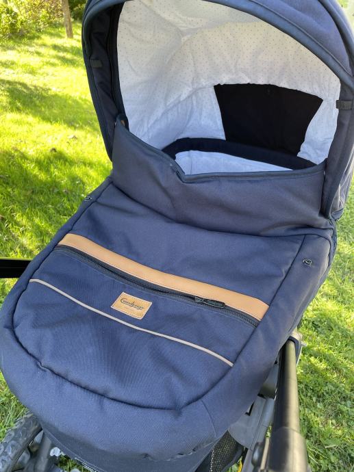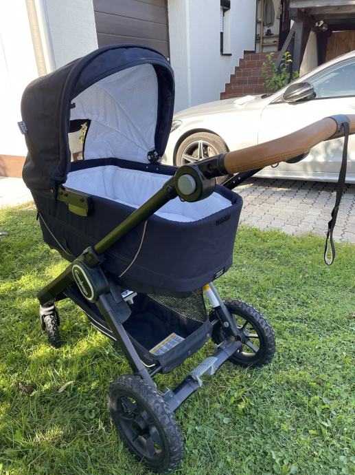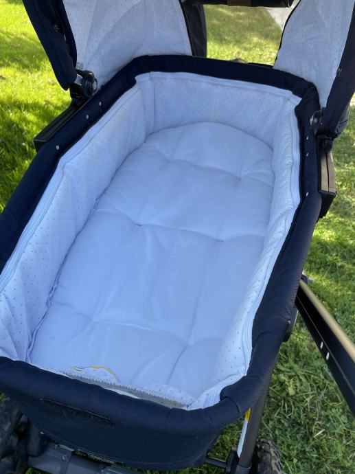 Voziček Emmaljunga, švedska kakovost z vsemi dodatki. Velika izolirana košara, ki omogoča ventilacijo dna poleti, sicer pa topla in udobna pozimi. Športni del omogoča povsem vodoraven položaj ter ima veliko streho. Dodatno dežnik- senčnik, rain cover in mreža proti mrčesu, organizator, držalo za lonček, stojalo za drugega otroka in adapterji za jajčko.