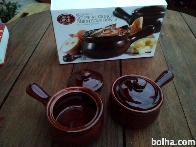 prodam nov komplet štirih glinenih posodic s pokrovom