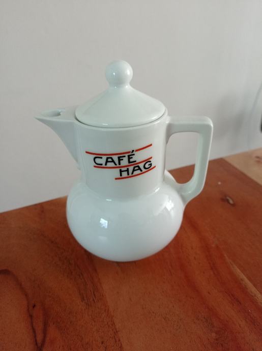 Prodam posodo , vrč za kavo z napisom Cafe Hag porcelan. Posodica je lahko za zbiralce, kot reklamni kos. Višina z pokrovom je 15 cm. Obseg 3,5 dl.