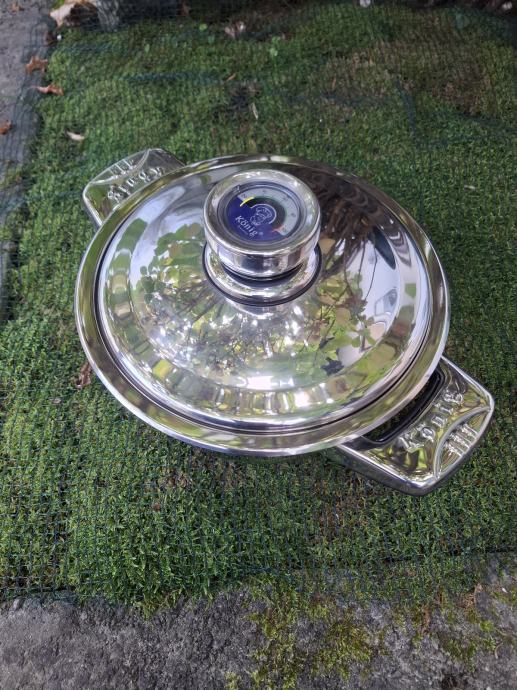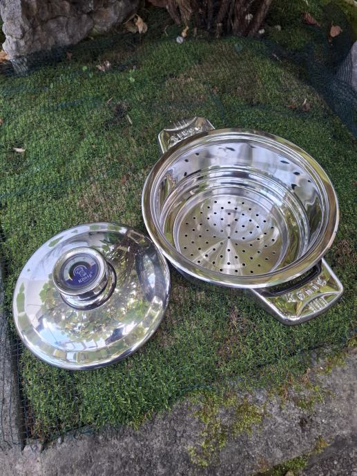Zaradi neuporabe prodam novo,nerabljeno posodo-cedilo s pokrovko.Premer 23 cm,višina 10 cm.Nerjaveče jeklo.König-Avstrija.