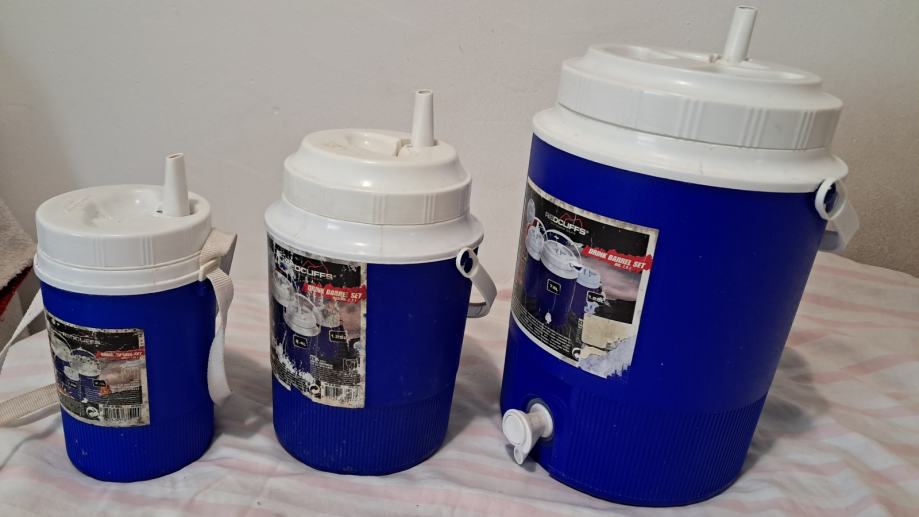 Zelo malo rabljeno, a zelo dobro ohranjeno. Vsak sod ima pokrov, ki se odvije in svojo pipo za enostavno natakanje tekočine. Največji sod 7,5l ima pipo tudi spodaj za enostavno natakanje. Idealni za vodo in katerokoli drugo pijačo. Zložijo se lahko sami v sebe, se pravi manjša dva se lahko zložita v največjega. Prevzem Zasavje, lahko pošlem po pošti.