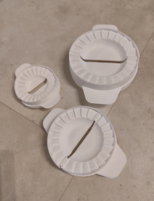 Komplet 3 modelčkov za oblikovanje piškotov, žepkov, raviolov, tortelinov. Izdelani iz plastične mase. Modeli so velikosti: Ø 6, 8 in 10 cm.