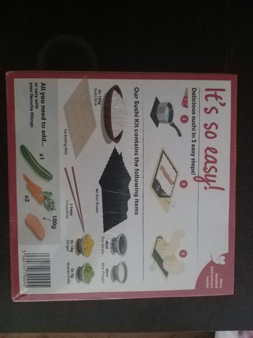 Za simbolno ceno prodam sushi kit, neodprt. Vsebina je razvidna s priložene fotografije.