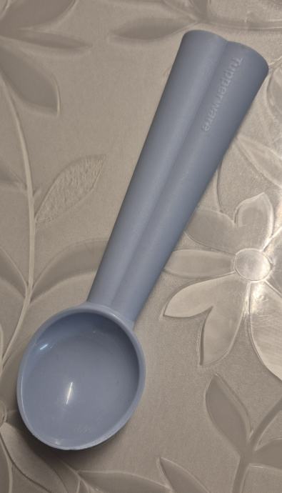 Prodajam rabljeno žlico za sladoled v svetlo modri barvi. Ergonomično oblikovana z dolgim ročajem za lažje zajemanje sladoleda iz globokih posod. Žlica je še vedno v dobrem stanju in popolnoma uporabna.