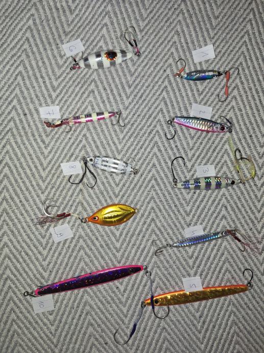 Prodajam jig-e za ribolov iz obale in čolna z nataknjenimi visokokvalitetnimi trneki in/ali asisti. Kupljeni v večini v trgovini Monster bite. Večina jih je rabljena izredno malo ali celo nič. Cene med 7 in 10 EUR na kos glede na težo.