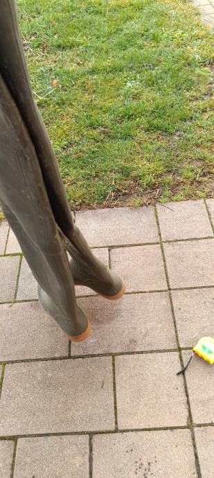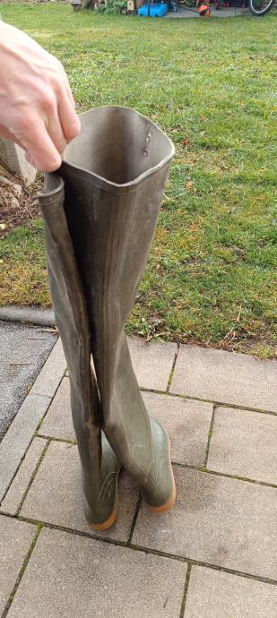 Ribiški škornji, visoki skoraj 80cm, solidno ohrajeni.