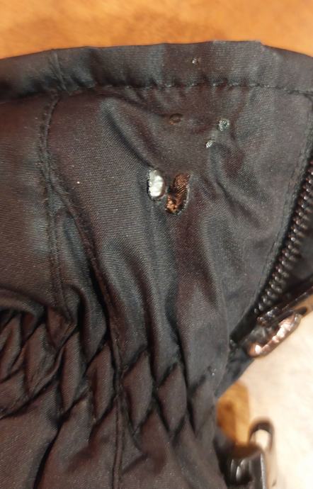 Manjša poškodba na desni rokavici, vidno na sliki