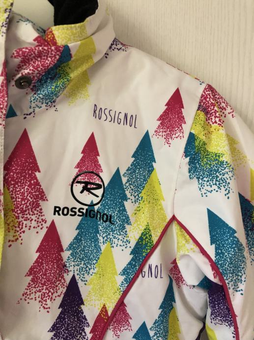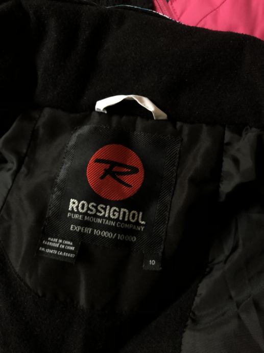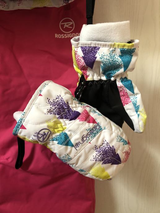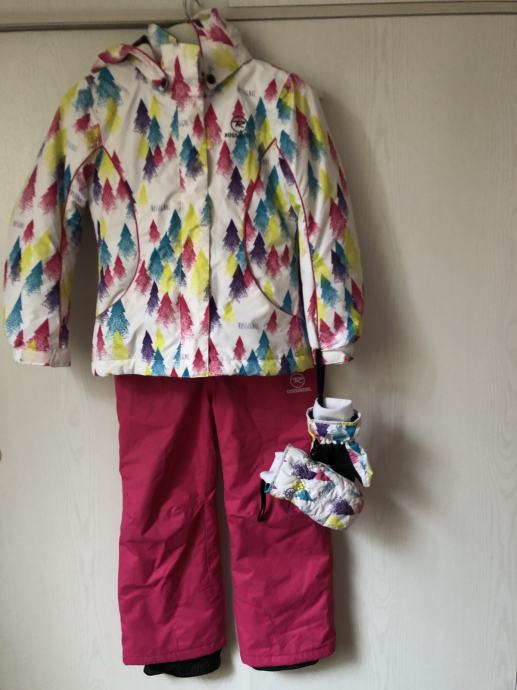 Rossignol dekliški komplet za smučanje in zimske športe, odlično ohranjen in očiščen. Prva lastnica. Velikost 10 let. S kapuco, na rokavu žepek z zadrgo za smučarko vozovnico. V kompletu so tudi rokavice. Kupljeno v Kristalni palači v BTC ju.