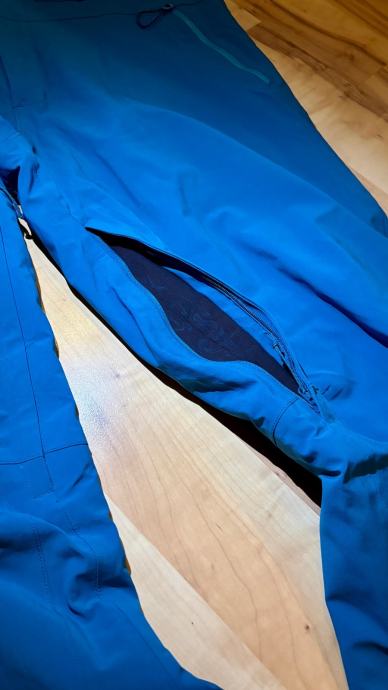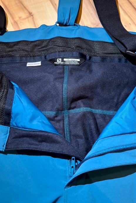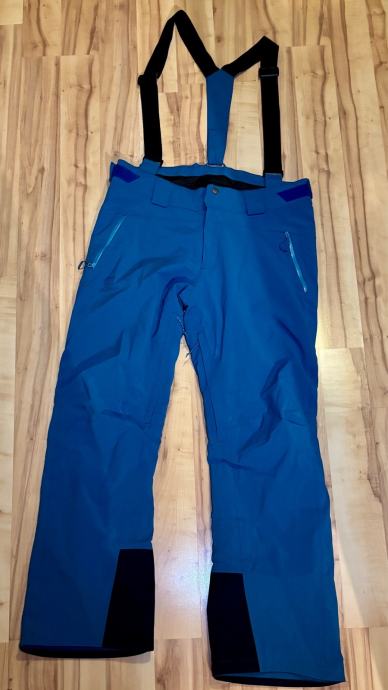Prodajam popolnoma nove modre smučarske hlače z naramnicami in ojačanimi predeli na kolenih. Hlače imajo praktične žepe z zadrgo in črne detajle na spodnjem delu.