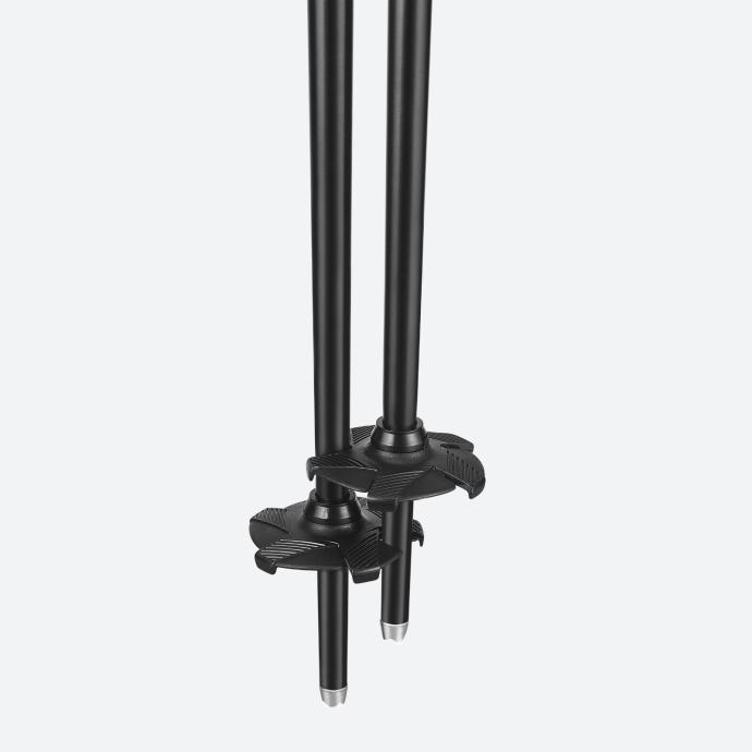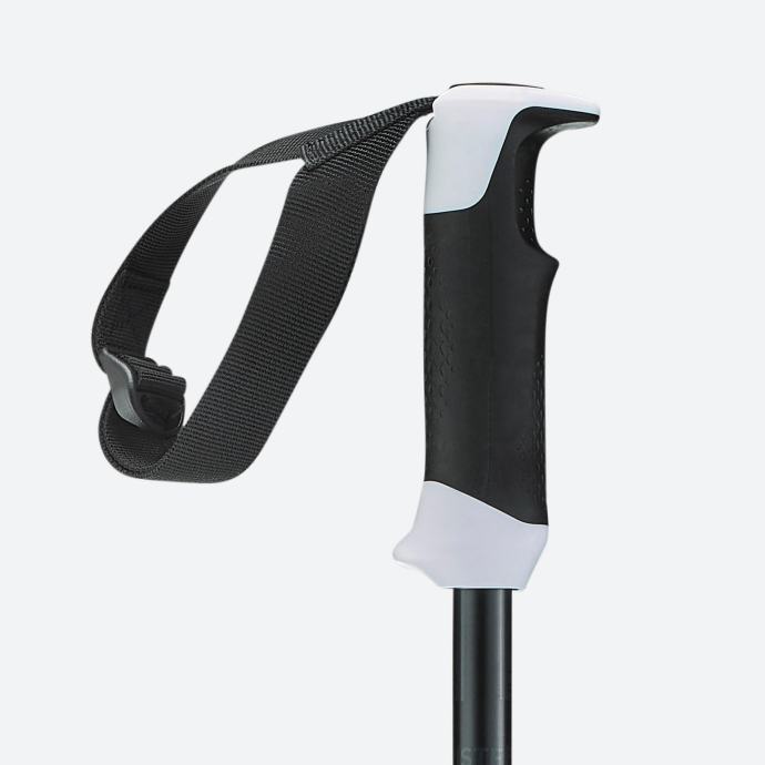 Trpežne smučarske palice, 130 cm dolžine, ki zmanjšajo nevarnost poškodb v primeru padca. Palice so opremljene s posebnim sistemom za sprostitev zapestnega traku v primeru padca. Predoblikovan trak je pritrjen na zgornji del ročaja in se po potrebi odpne. Trak lahko potem enostavno pritrdite nazaj.