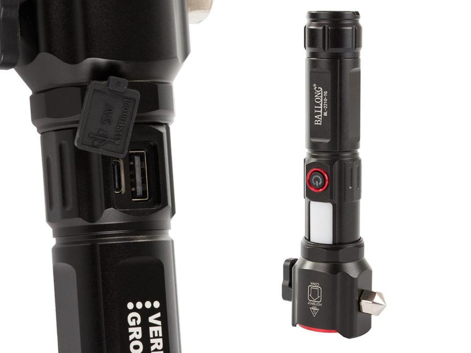 Svetilka je izdelana iz trpežnega aluminija, ki zagotavlja odpornost na udarce in vodo, kar jo naredi primerno za uporabo v različnih vremenskih pogojih. Z možnostjo povečave svetlobe z zoomom je idealna za osvetlitev večjih površin ali natančno osvetlitev oddaljenih predmetov. Vgrajena powerbank funkcija vam omogoča, da med potovanjem ali v sili napolnite svoje elektronske naprave, kot so pametni telefoni, tablice in druge USB naprave, kar je še posebej koristno v situacijah brez električnega vira.