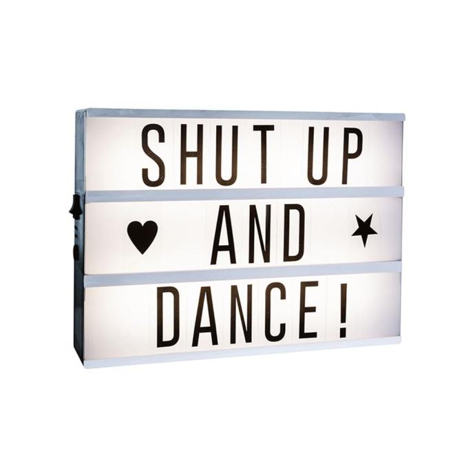Iščete tablo ali stensko luč na kateri bi lahko pustili svoje sporočilo ? Potem je ta LED Lightbox idealna rešitev za vas. S to LED svetlečo škatlo lahko črkujete in osvetlite svoje besede, zahvaljujoč 85 črkam in simbolom vključenim v paketu. Izdelana je iz plastike in je namenjana za notranjo uporabo, vključno s črkami in simboli.