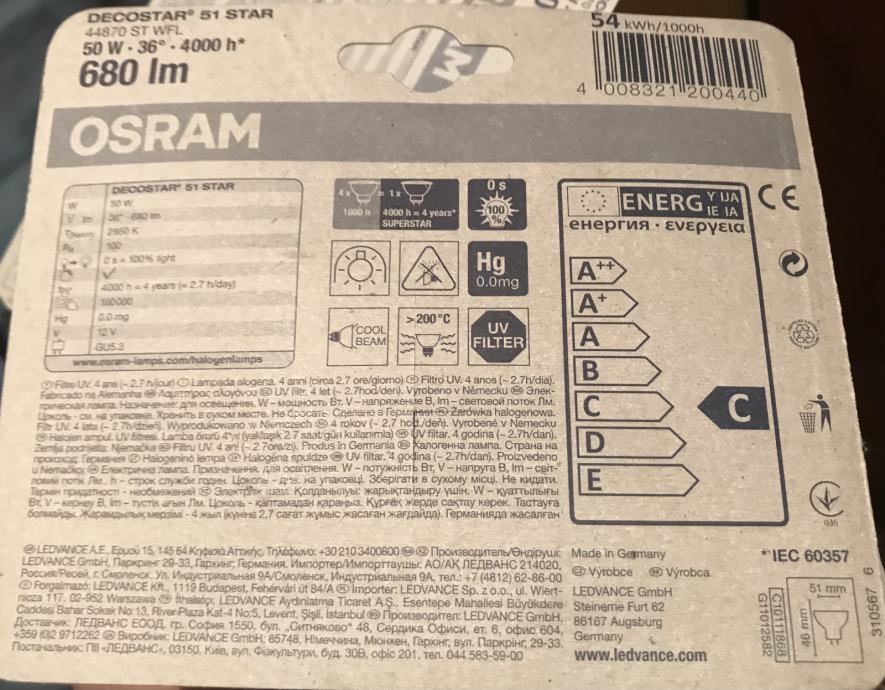 Prodam nove Osram 12V halogene reflektorske žarnice. 2x pakiranje po 2 kosa. Cena 6€/1 pakiranje.