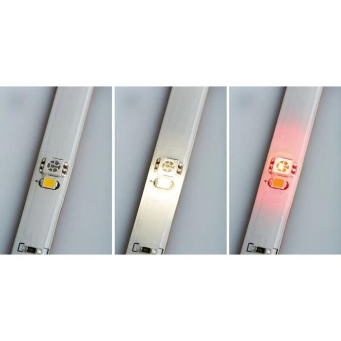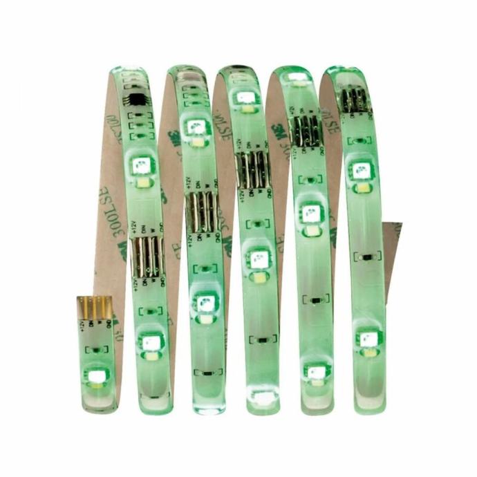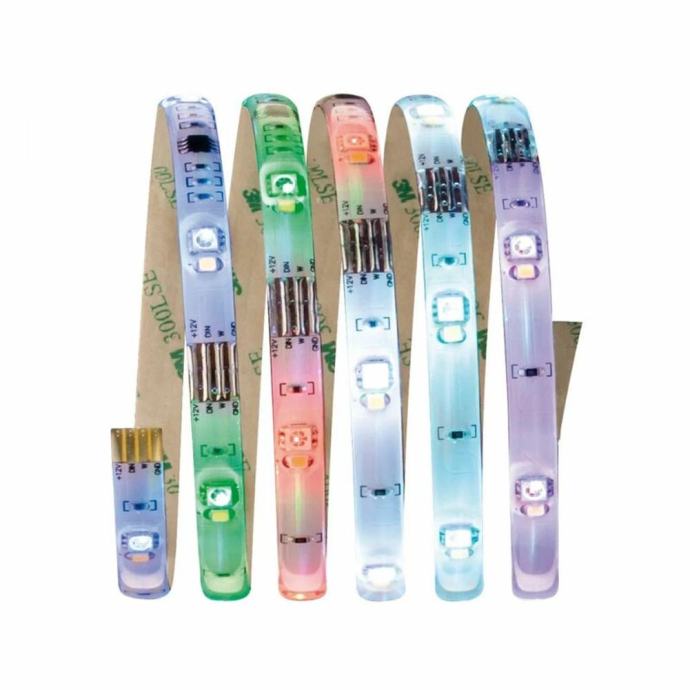 Komplet digitalnih LED trakov zagotavlja različne svetlobne učinke. Različne barvne mešanice v dinamičnih ritmih lahko upravljate s priloženim daljinskim upravljalnikom. Možna je tudi zatemnitev svetlosti. Da vam ne bo preveč pisano, dioda v beli barvi (W) poskrbi za prijetno toplo belo svetlobo s pritiskom na gumb in naredi mešanje belega tona med barvami rdeče, zelene in modre (RGB) odveč.