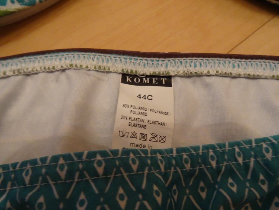 kopalke Komet, dvodelne, št. 44C, z zatezno vrvico v stranskem šivu hlačk, modrček nepodložen lahko samostoječ- naramnice se odstrani, model 2020, 2x oblečene, cena novih 35 EUR v spletni trgovini Komet. Kupljene 2020.
