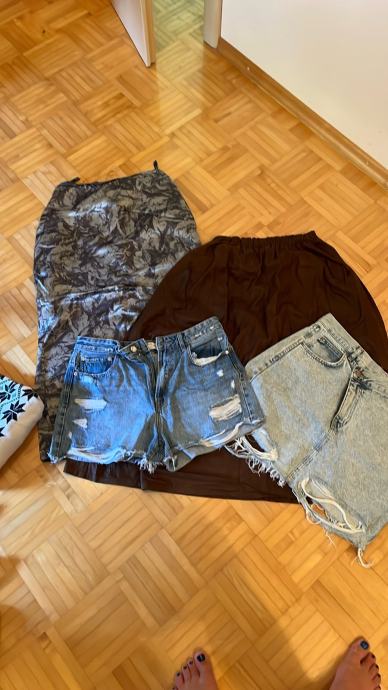 Dobro ohranjeno. Nekaj je vmes tudi novih. Vsega slupaj je približno 40 kosov različnih oblačil. Vmes je tudi pravo usnjeno krilo.