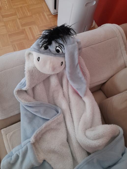 Odeja osliček z kapuco in rokavičkami, primerna za večje otroke oz odrasle dim 150 x 150 cm