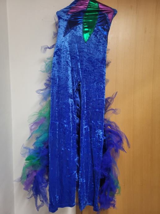 Plesni kostum z hlačami in z repom od pava.