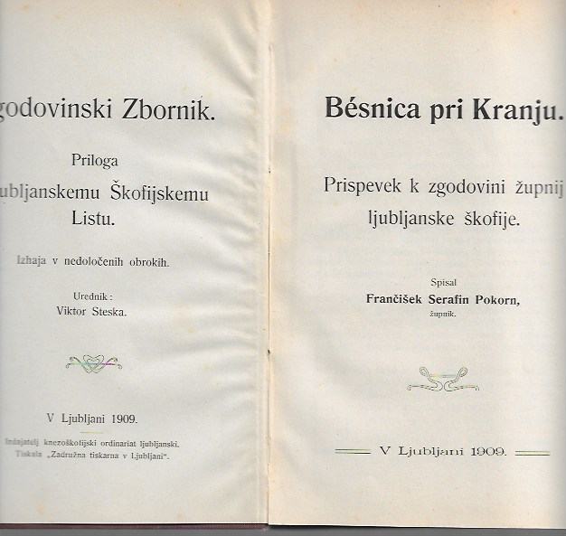BESNICA PRI KRANJU - ZGODOVINA KRAJA, F. Pokorn, 1909
