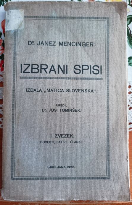 IZBRANI SPISI 3, Janez Mencinger, 1922 - uredil Josip Tominšek