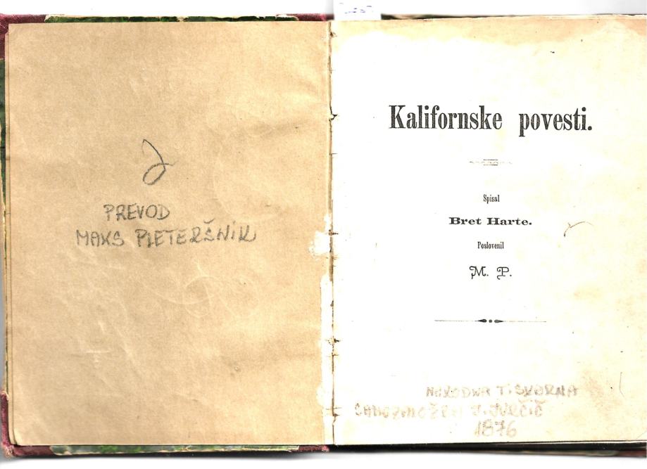 KALIFORNIJSKE POVESTI, Bret Harte, 1876 - SAMOZALOŽBA JOSIP JURČIČ