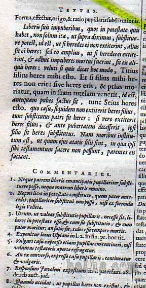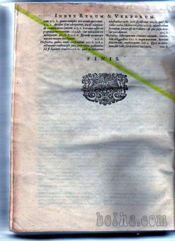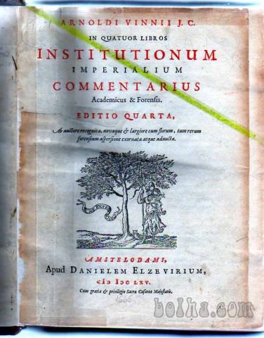 Naslov knjigi je: INSTITUTIONUM (naredba, odlok) IMPERIALUM (gospostvo) COMMENTARIUS (spominska knjiga), v Amsterdamu jo je v latinščini izdal Daniel Elzevir, je četrta izdaja v štirih delih, tu so vsi v eni knjigi, ki je vezana v usnjene platnice z okraski, ima pa 888 + 20 strani kazala, naslovno podobo, vinjeto na koncu knjige in mnogo okrašenih velikih začetnic pri novih poglavjih, odlična ohranjenost. Dvig in ogled je možen tudi v Ljubljani.