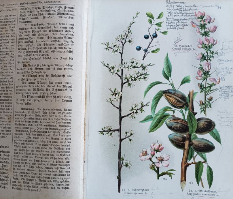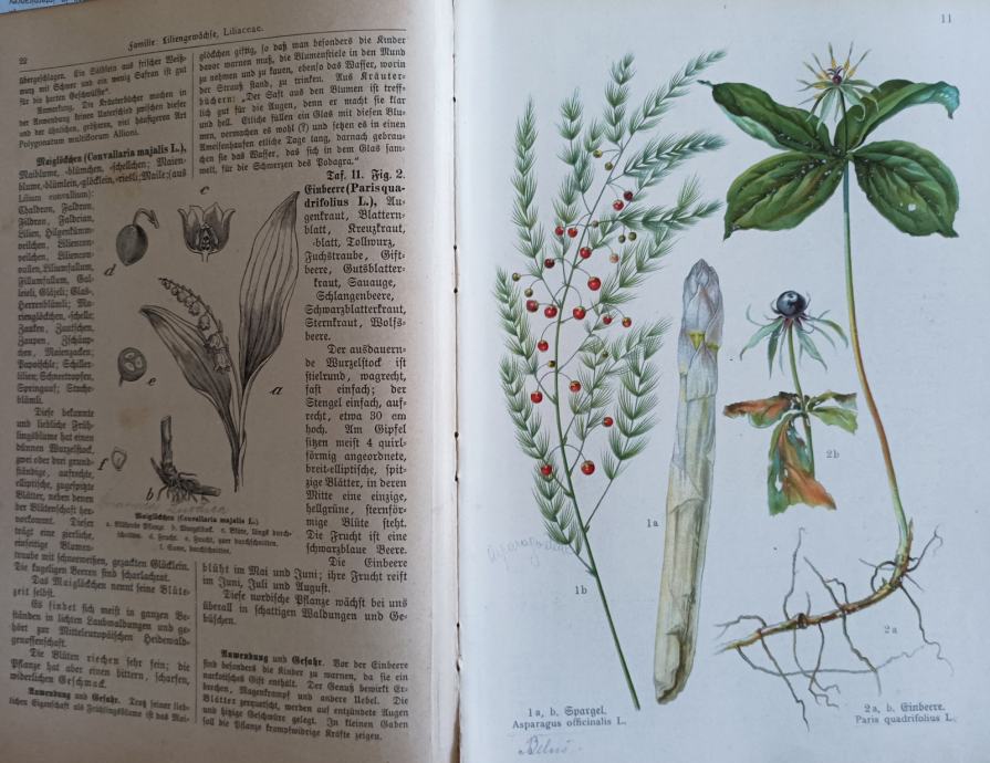 Knjiga zelišč je vezana v platno in ima 246 strani z mnogimi črnobelimi ilustracijami med tekstom in 86 tabelami s 460-imi barvnimi ilustracijami, nemščina, solidna ohranjenost.