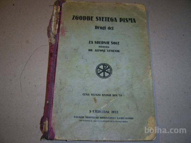 Prodam knjigo ZGODOVINA SVETEGA PISMA Dr Alfonz Levičnik leta 1932. Knjiga je slabše ohranjena. Ostale informacije na gmail ali na telefon 051 411 201