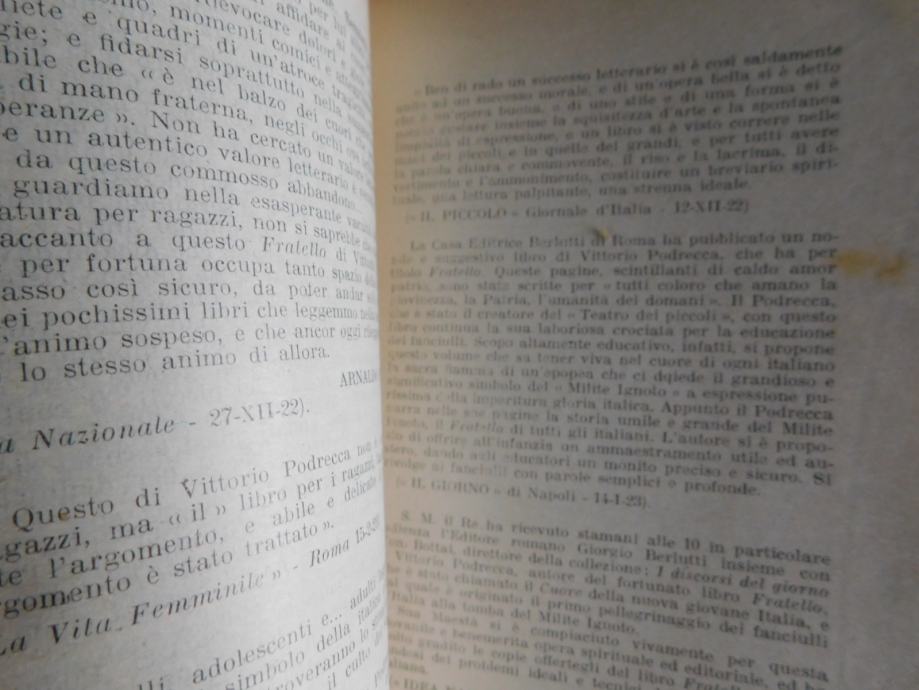 Knjižica za mladino-fašistična propaganda med vojnama na Primorskem. Izdana v Rimu med obema vojnama, brez datuma, odlično ohranjena zadeva. Pečat fašistične potujčevalne organizacije Dante Alighieri - podružnica Ajdovščina. Na drugi strani znamka te organizacije. ZELO REDKA STVAR v tako dobrem stanju. Glej fotke, poštnina je vaša stvar.