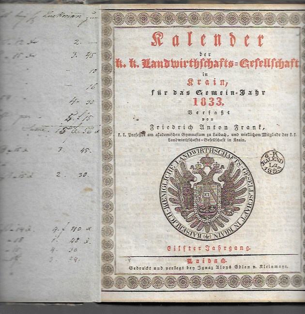 KOLEDAR KMETIJSKE DRUŽBE - LJUBLJANA, 1831/1833