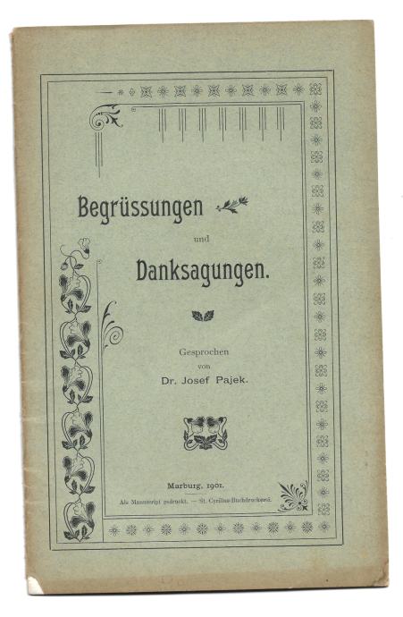 Jožef Pajk je brošuro natisnil v nemškem jeziku - latinici, ima 20 strani + knjižne vinjete + fotografijo cerkve v Mariboru, zelo dobra ohranjenost.