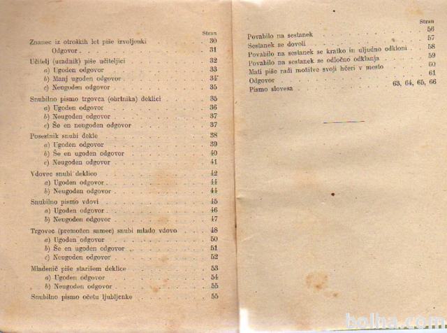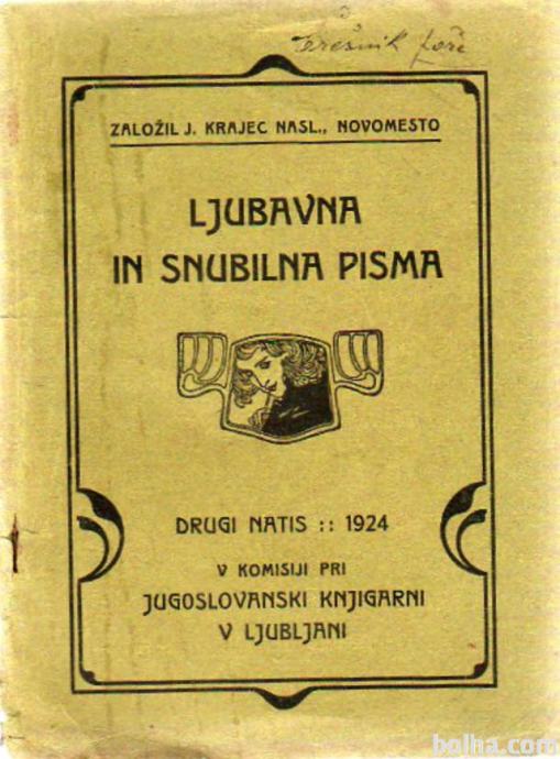 To je knjižica z vzorci ljubezenskih in snubilnih pisem, vezava v kartonske platnice, 68 + 4 strani, natisnil in založil jo je Josip Krajec iz Novega mesta.