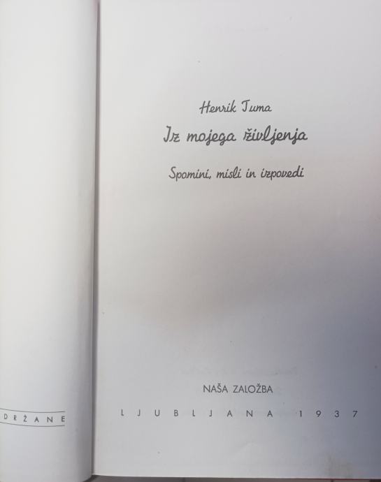 IZ MOJEGA ŽIVLJENJA - SPOMINI, MISLI IN IZPOVEDI, Henrik Tuma, 1937