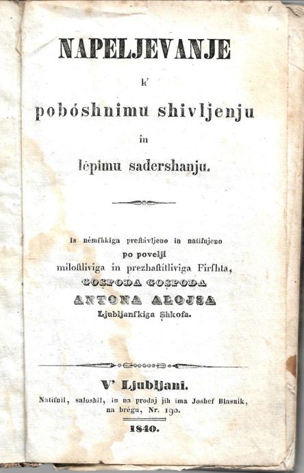NAPELJEVANJE K POBOŽNEMU ŽIVLJENJU IN LEPEMU ZADRŽANJU, A. Wolf, 1840
