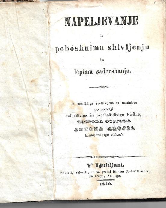 NAPELJEVANJE K POBOŽNEMU ŽIVLJENJU - MOLITVENIK, 1840
