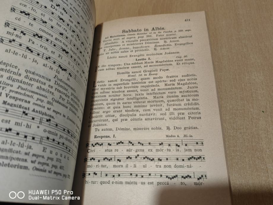 Oficij velikega tedna od nedelje v cvetnih listih do sobote v beli barvi. Po vrstnem redu brevirja, misala in rimskega papeža z napevom iz avtentičnih izdaj, ki jih je izdala Kongregacija za sveto obredje.