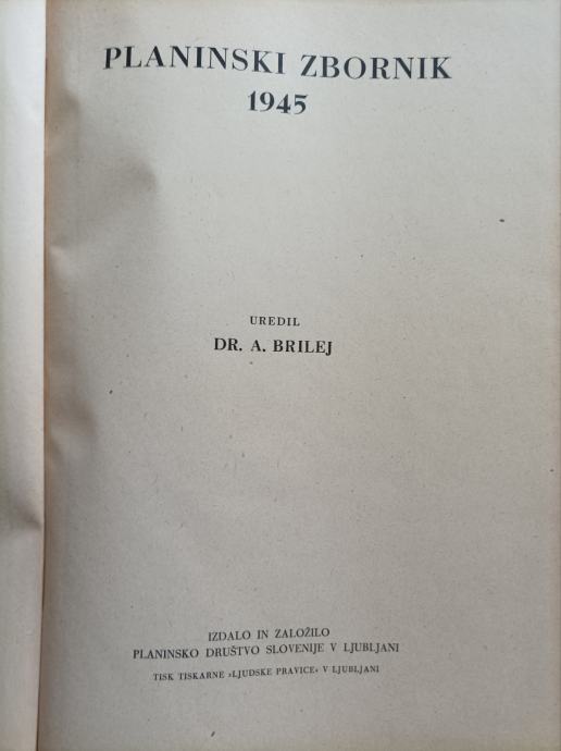1. Planinski zbornik 1945 je nadomeščal Planinski vestnik za to leto, trda vezava v polplatno + ilustracije in fotografije - 15 eur