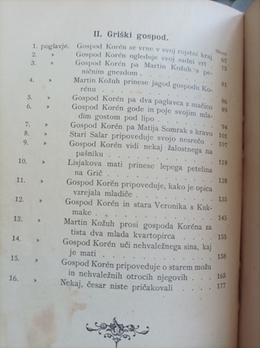 Knjižica pesmi in povesti Griški gospod je vezana v kartonske platnice in ima 190 strani + 2 strani kazala + knjižne vinjete in mnogo ilustracij med tekstom.