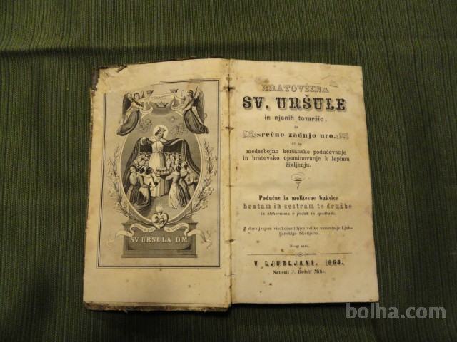 MOLITVENE IN PODUČNE BUKVICE, BRATOVŠČINA SV. URŠULE, 1863, NATISNIL J.RUDOLF MILIC. PLATNICE SLABO OHRANJENE, VSI OSTALI LISTI V KNJIGI ZELO DOBRO OHRANJENI