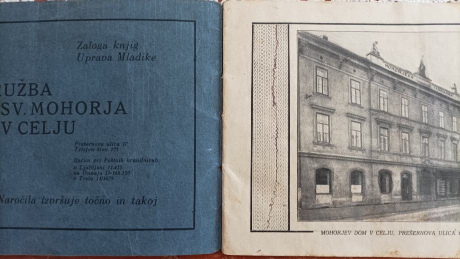 Knjižica je vezana v karton in ima 24 strani s fotografijo doma v Celju in seznamom knjig + reklame založbe.