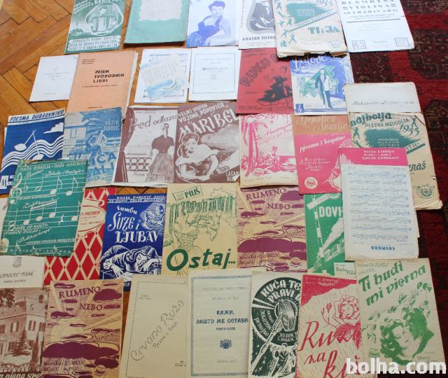 Šlagerji, Melodija sezone, Metronom, Pjesme iz Dalmacije, Jazz Gitara, Kitara akordi, Festival zabavne muzikw Opatija 1959, Opatija 1960, Melodija koje volite, Najnoviji popularni šlageri, Tonovi i note, Pesem svobodnih ljudi Ljubljana 1953 in ogromno drugih tekstov, notnih zapisov pesmi, itd. Povečini iz 50-ih let.