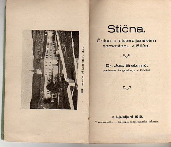 Črtice o samostanu Stična je spisal profesor bogoslovja v Gorici J. Srebrnič, vezava v kartonske platnice, 64 + 4 strani + fotografije in podobe, dobra ohranjenost.