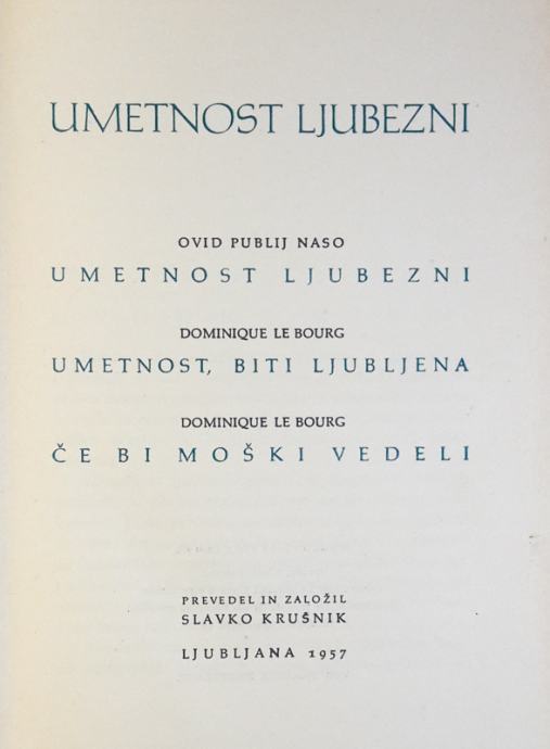 Dominique Le Bourg, prevedel in založil Slavko Krušnik, 1957, 256 strani, trda vezava.