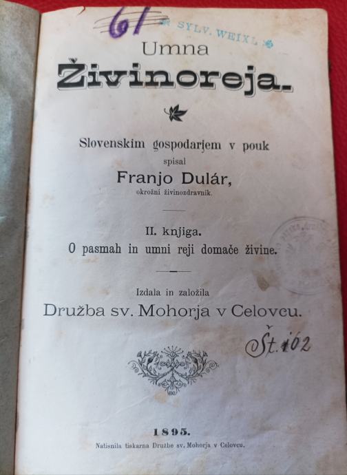 UMNA ŽIVINOREJA - O PASMAH IN UMNI REJI DOMAČE ŽIVINE, F. Dular, 1895