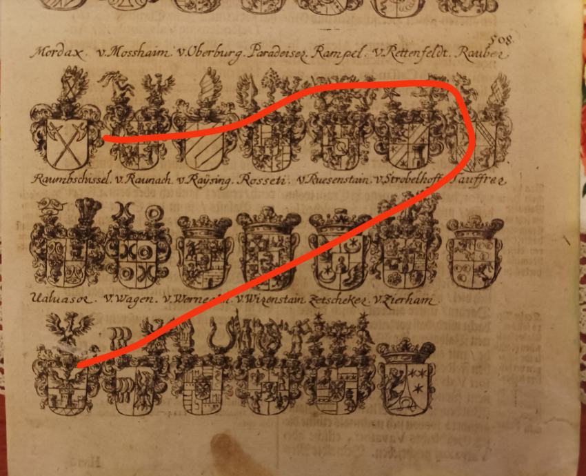 Naprodaj sta dva lista iz originalne Slave iz leta 1689, ki prikazujeta grbe plemiških družin. Cena 45 eur je za vsak list posebej.