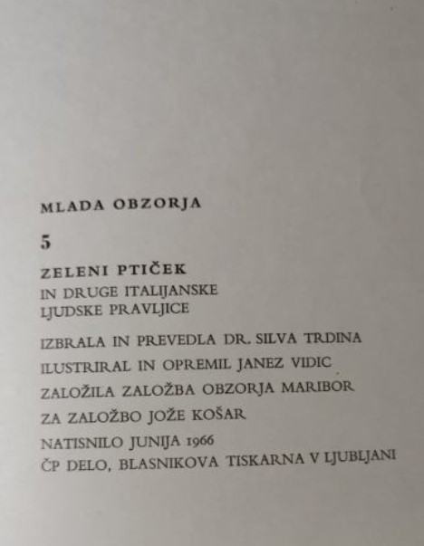 Zeleni ptiček in druge italijanske ljudske pravljice 1966 prodam