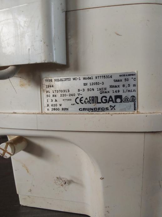 Prodam črpalko za wc sololift wc1 rabljena cca pol leta, potem pa se je naredila kanalizacija in jo ne potrebujemo več. Stara je cca dve leti.